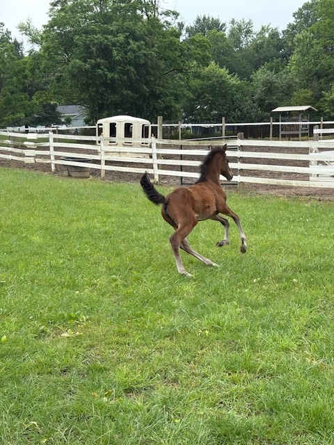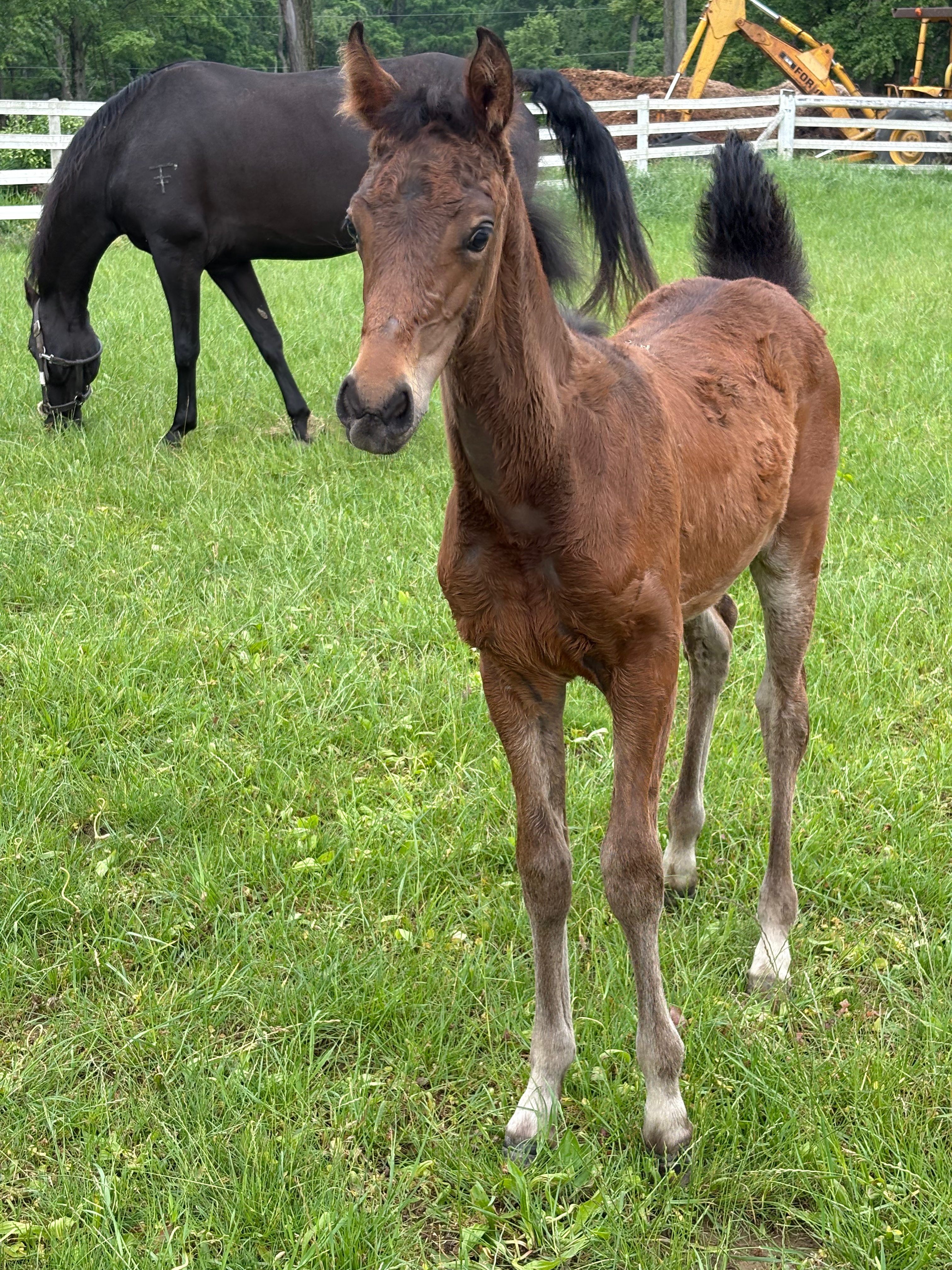 Andromeda Galaxy is the first foal of our breeding program. She is a 2025 KWPN registered filly by Sir Sinclair. Sir Sinclair, KWPN stallion, is an ideal sire for riders seeking an amateur‑friendly partner because he reliably passes on rideability, workmanlike temperaments, and correct, supple movement rather than just flashy gaits. His offspring are known for being straightforward to start, forgiving of rider mistakes